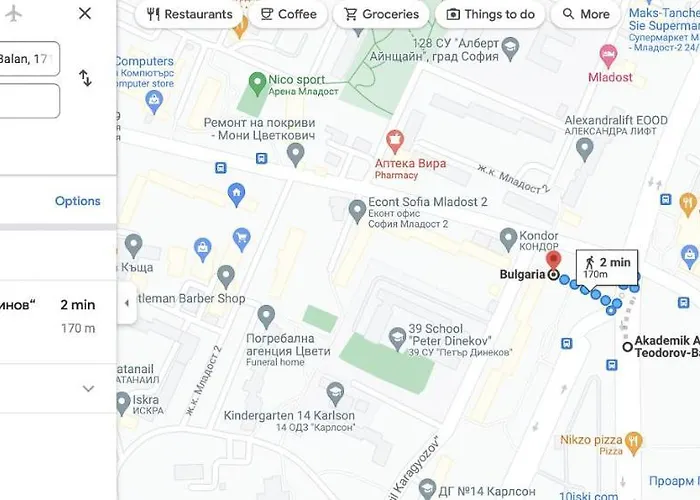 Το διαμέρισμα βρίσκεται 300 μέτρα μακριά από το σταθμό μετρό Akademik Aleksandar Teodorov - Balan. Το Turkish Restaurant Delight απέχει περίπου 400 μέτρα.